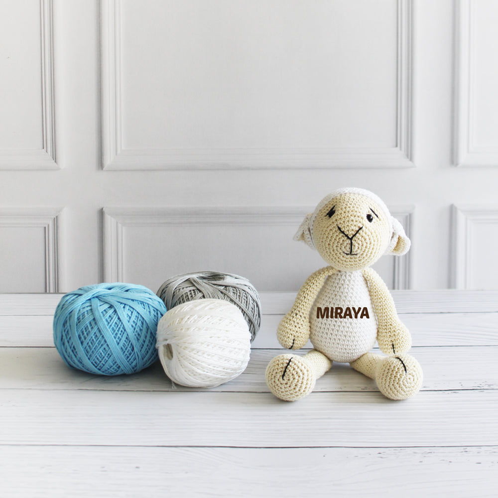 2. Material: Cotton yarn/ Polyester Fibre filling /Plastic eyes & buttons. The name on the toy is printed.