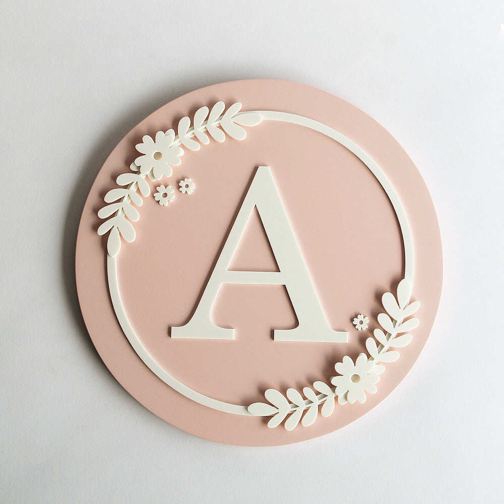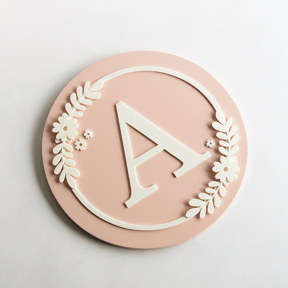 Name Sign Block Initial - Flower Theme